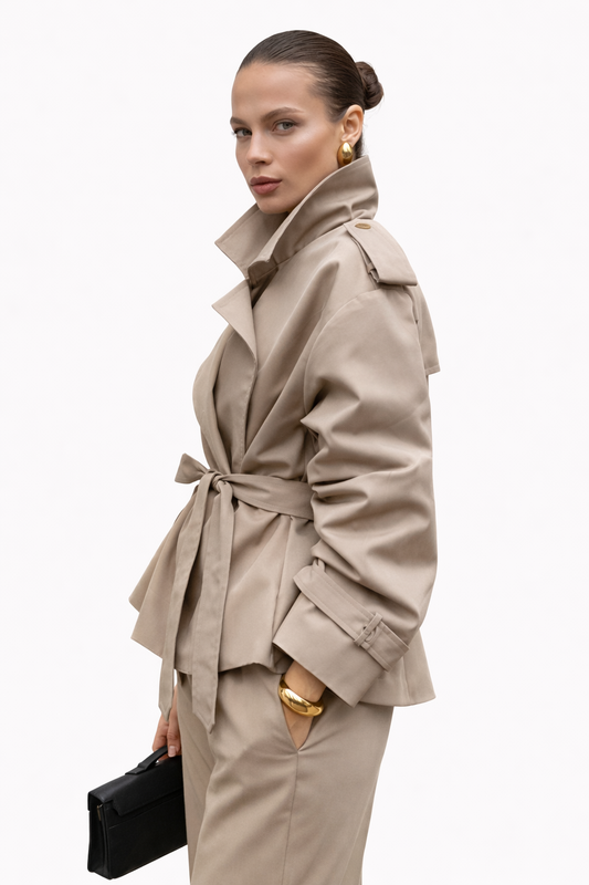 Éloria Korte Dames Trenchcoat met Vetersluiting en Revers