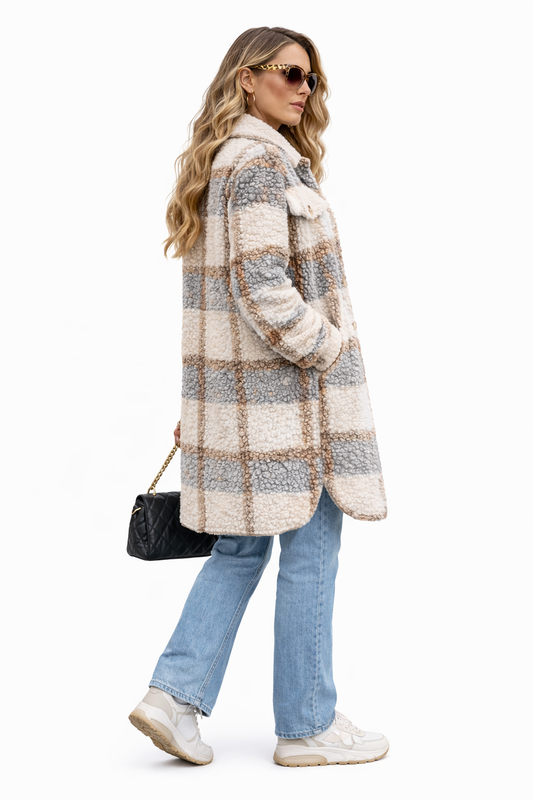 Elysia Fuzzy Check Jacket – Geruite Dames Jas met Knoopsluiting