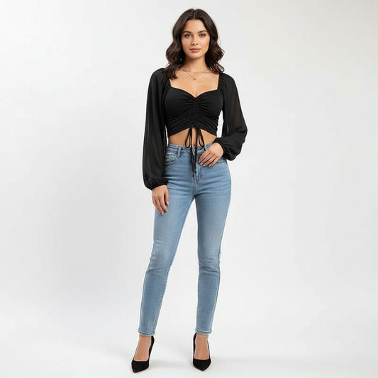 Geknipte kanten blouse met lange mouwen – Sexy, Transparant & Vrouwelijk