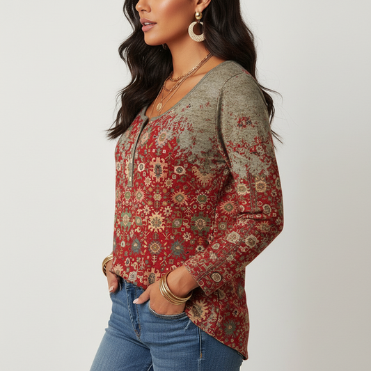 Bedrukte dames top met lange mouwen – Denise